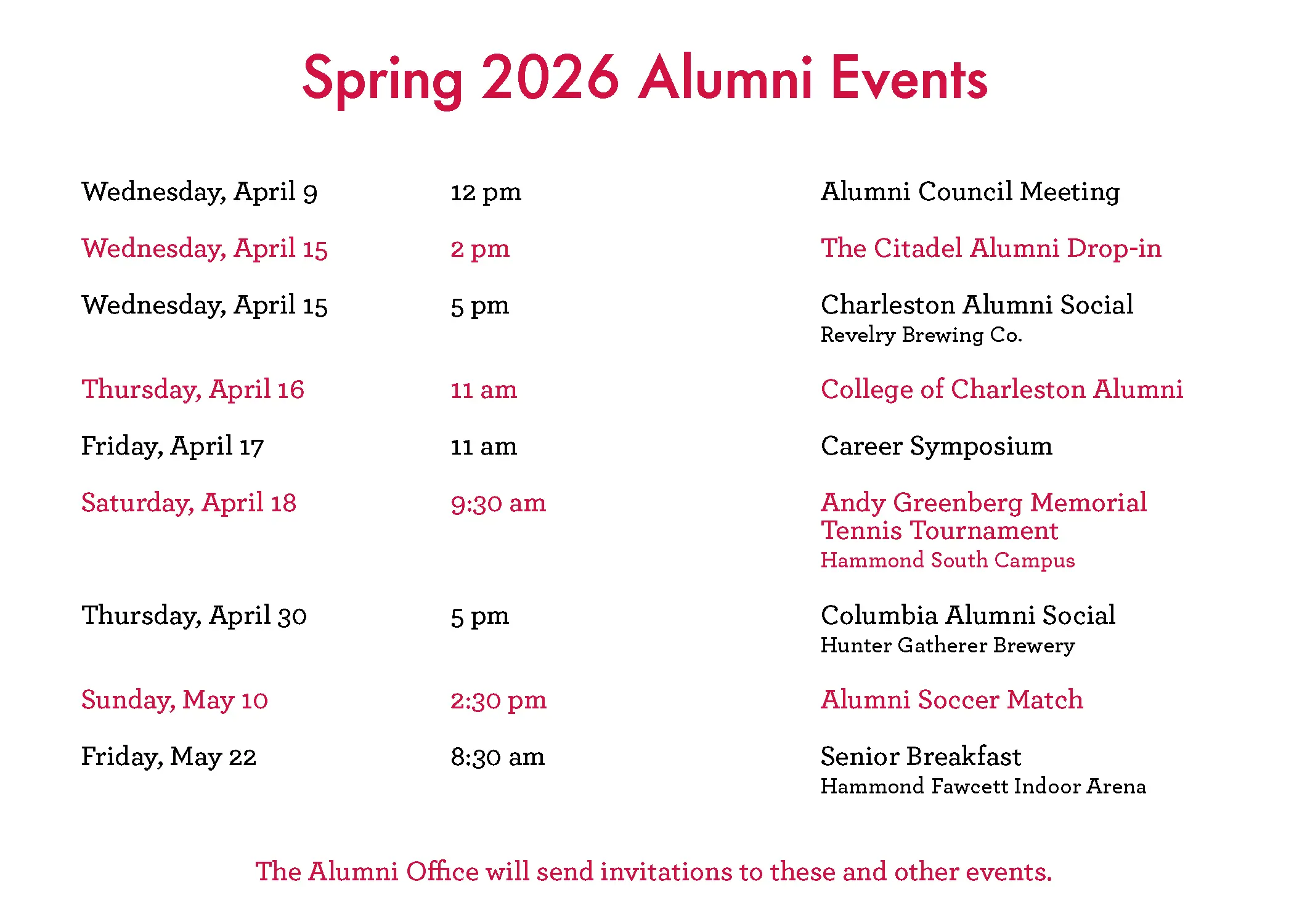 Alumni Calendar of Events